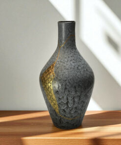 Vase Bleu Wabi-Sabi : Kintsugi Or & Incrustation d’Aile de Scarabée