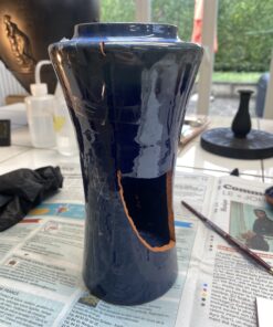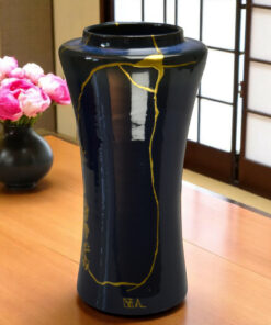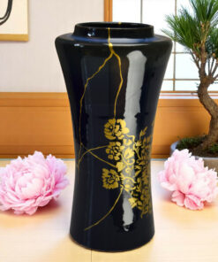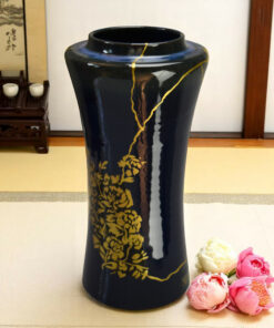 Vase Bleu: Kintsugi Or & Maki-e de pivoines